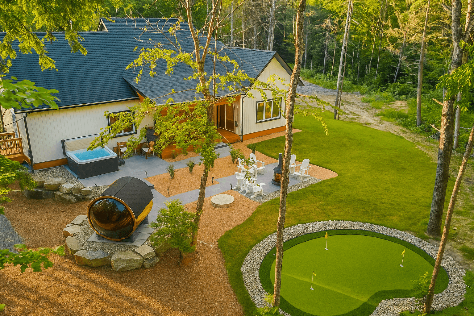 A smokeless firepit surrounded by Muskoka chairs completes this haven of tranquility.